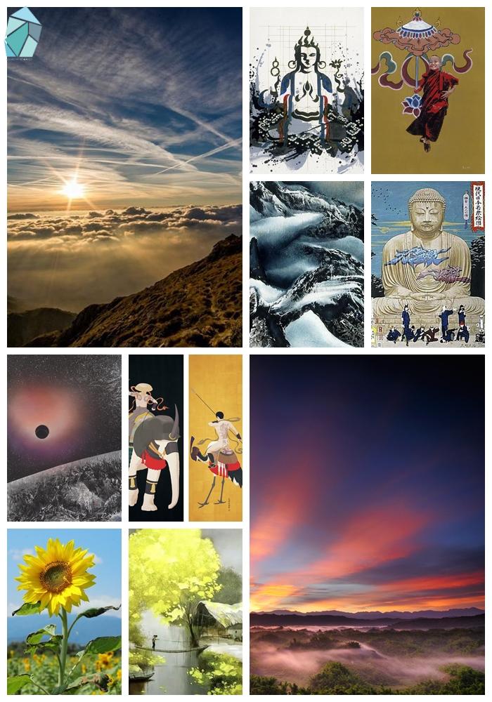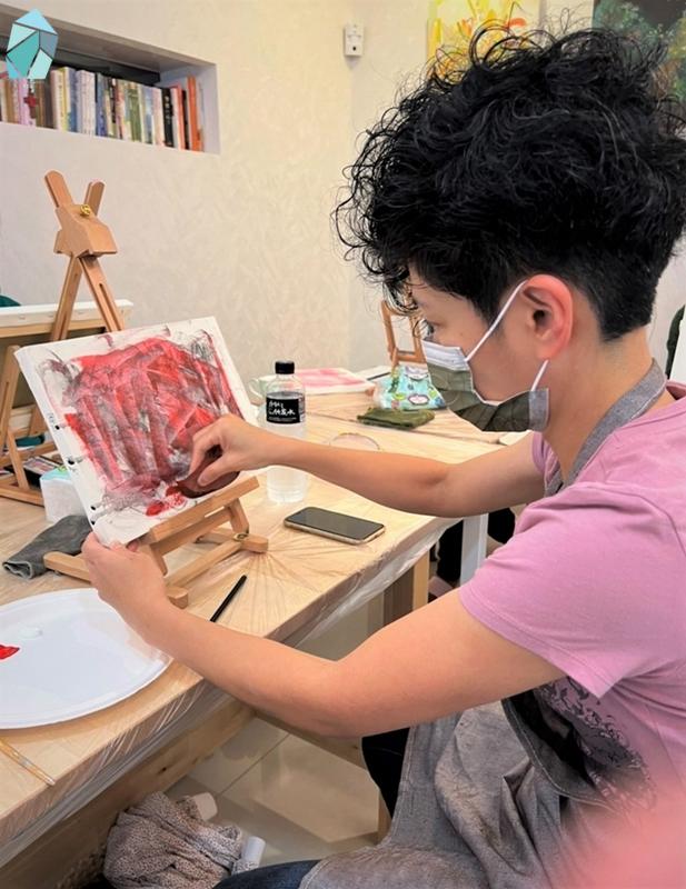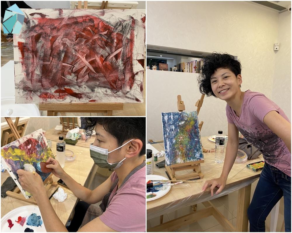圖文手作生活美學體驗直覺繪畫之旅直覺繪畫之旅 (5) 工作坊學員的直覺練習 by 光目 04-11-2022 written by 光目 04-11-2022 965「直覺繪畫之旅」導覽頁:https://gemsinstories.com/illustration/7988/如果回憶有顏色,會是怎樣的組合?人說黑色、灰色代表肅穆沉寂,但我記憶中的灰黑是繁星柔軟的被褥;人說月下的深藍透露憂傷,但我總沉浸在那博大開闊的神秘海洋。過去一個月我在Joy的指導下開始了直覺練習,這篇文章等於是「直覺繪畫之旅 (4) 從拿剪刀到拿畫筆教學」中直覺繪畫工作坊學員的現身說法。另外也有「神聖臉孔工作坊」的學生做過紀錄喔,歡迎點看「崔西吹泡泡」的Facebook Watch 觀賞精美影片:https://www.facebook.com/watch/?extid=CL-UNK-UNK-UNK-IOS_GK0T-GK1C&v=2222698864613545今天就跟大家分享我的直覺練習,也是我發現此藍非彼藍、此相亦非彼相的過程。Joy教大家學習建構每個人特有的「色彩記憶資料庫」。方式是從流動書寫、感恩書寫的內容中,用色彩去表達連結感受,同時也教大家去找自己看了會心情放鬆、療癒的圖片,描述裡面有什麼記憶中經歷過的色彩。首先是「流動書寫」,要快速寫滿紙張,讓腦中浮現的東西與手同步寫出來,可以清理、鬆腦,開啟直覺力。我每天都有做,感覺很抒壓。下圖是某天的流動書寫,同一張紙寫了三層吧,就從左到右變成鬼畫符。 我覺得流動書寫很像山裡面一座高高的瀑布,水沖下來打在底部的石頭上,嘩啦嘩啦濺起大大的水花,水很猛很快的流走,但水一直沖,瀑布附近的石頭變的圓圓亮亮的。其次是「感恩書寫」,每天寫幾件有感謝喜悅的事情。我偶爾紀錄,每次的差異性很大,有些天寫施工順利、追蹤穩定之類大件的事情;有些天則是獲得一袋新鮮帶葉的蓮霧、雨停了…之類的小事。再練習把感恩事項連結至色彩表達,例如某天我寫「氣象預報降雨機率90%,但我進門以後才突然傾盆大雨。」→給我迅疾、明快的感受 → 聯想到奔跑的白馬,透明強勁吹亂頭髮的風。第三是「靈感照片」,把幾張自己看了會心情放鬆、療癒、希望的圖片拼貼成一張(👉 關於「靈感板」,請期待「直覺繪畫之旅 (6) 」Joy會有更詳細的介紹。)我平常就喜歡看看圖畫跟照片,靈感板出現了好多版本 😆 後來帶去工作坊的是長這樣: 左上跟右下最大的兩張,都是拍攝日出時分的照片。中間有幾位我很喜歡的藝術家:不丹的Tintin Pema Tshering (1951-)[1]、當代水墨大師劉國松(1932-)[2]、日本當代藝術家天明屋尚(Tenmyouya Hisashi, 1966-)[3]、越南畫家 Đặng Văn Can (1957-)。[4]還有一張我最喜歡的花種向日葵的照片。我發現靈感板的圖片跟自己生命的連結很清楚,我的本名有祈禱日出的意思,但是黎明之前往往是最黑暗的時刻,到處都是黑曜石、灰曜石的顏色,就像父親最喜歡買的石頭,他常說可以辟邪、化煞、護身;也像月光或路燈照耀之下柏油路上蹦跳的細碎亮光。整體的底色以及許多勾勒的線條都是深深深藍,我記憶中夜晚的大海與星辰,乍看有點讓人畏懼的神秘朦朧,但靜心觀看就發現流動的水波漣漪,以及慢慢一點點移動的小星星。靈感板呈現明暗對比,沒有大範圍、高彩度的鮮豔,但有局部性的光彩。純白色,我的汽車、摩托車、屋子每個房間牆壁的顏色,讓我感到安靜、安全,沒有瑕疵,專心一致。明黃色,日出的太陽、法師的僧袍、向日葵的花瓣,像是濾鏡下的光暈,一種溫和不刺眼,但絕對不會被掩蓋的存在,帶動我內在的希望感。工作坊對我來說是個直覺練習「途中」的小記錄,雖然是首度嘗試壓克力顏料,也第一次拿刮刀、海綿刷、叉子當畫具,但是當天也沒有多想、就跟著Joy的引導放膽嘗試。每個步驟都有驚喜的發現: 我還滿喜歡一開始的水墨畫風格,以及加上紅色之後有帶點未來主義(Futurism)的感覺。但是等到加入了藍色跟黃色,畫面開始有衝突,顏色跟構圖變得爭先恐後。Joy教我們把畫拿遠一點,看看整體的對比表現,然後拿出取景框,看看不同局部裡面喜歡的部分。也教大家把畫面轉個方向,就會出現不同的感受。按照Joy教的取捨技巧,我後來回到藍色調與白色線段,並在畫面中間留下想要呈現的光芒。 課程結束時是個濕冷的傍晚,但我並沒有「畫完」、「學會」的感覺,因為我更喜歡Joy的解釋:每一次繪畫過程中的啟發或者是遺憾,都是下一次繪畫的養分。我感覺直覺繪畫是一種想像力的探索,而不是一種從臨摹起步的創作。不是在一開始就設定自己要畫花畫鳥或畫樹,而是用各式畫具與顏料去跟畫布作實驗對話,在互動的過程中,反應出自己階段性探索的結果,畫面不只會跟自己現階段參考的靈感圖片有關連,也會對映出非常個人經驗的深層共鳴。學著放手嘗試、調整觀看角度、再重整畫面,也像是一種內心的傾聽與清理,現在最想要凸顯什麼,就把其它美麗但是可能龐雜干擾的色彩與線條捨去,反正以後還是有機會換它當主角。這個探索創作的繪畫過程可以沒有止盡。把畫帶回家的當晚,我感覺畫面好像自己在大雨滂陀的夜晚開車時的擋風玻璃,眼前有流淌的水跟敲擊的雨絲雨點,自己的車子頭燈射出光束、前車閃爍紅色的尾燈,還有迎面來車白晃晃的大燈。回家以後我把畫放在樓梯的轉角,一下就融入了自己的生活環境。 隔天有人進屋,很快就發現了它。「你買畫嗎?」「沒有阿,我自己畫的。」「是喔?放在樓梯那邊,很漂亮呀。這是什麼?台灣嗎?」疑,台灣?這樣一講,似